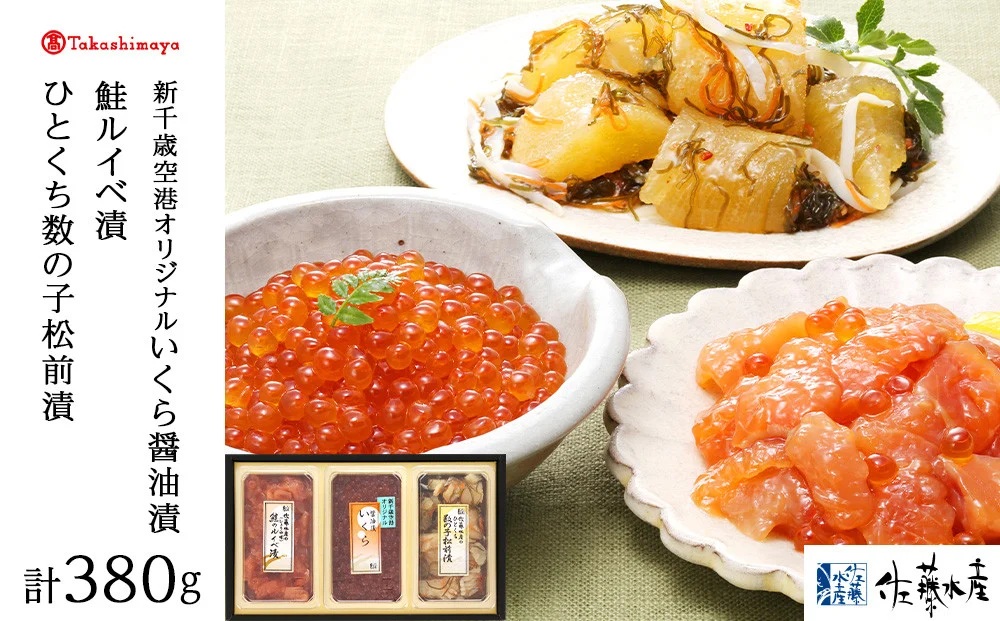 <佐藤水産> 佐藤水産の新千歳空港オリジナル いくら・鮭ルイベ漬・ひとくち数の子松前漬3点セット[高島屋選定品]