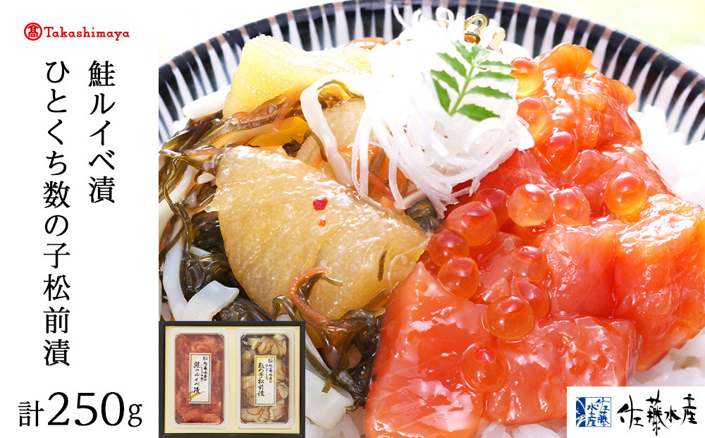 <佐藤水産>佐藤水産の人気珍味 鮭ルイベ漬とひとくち数の子松前漬2点セット[高島屋選定品]