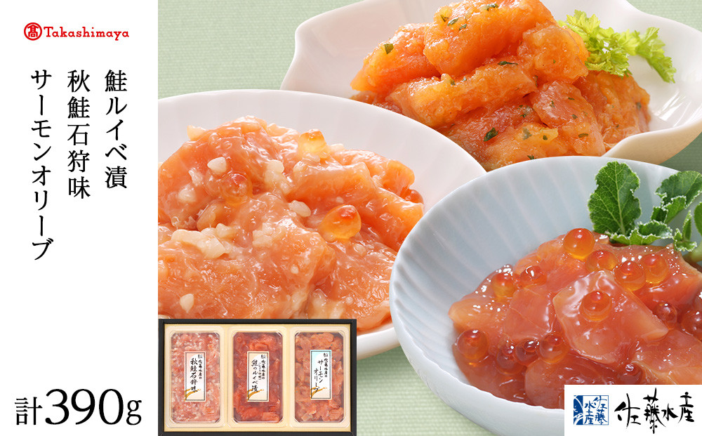 <佐藤水産>佐藤水産の鮭づくし珍味3点セット(鮭ルイベ漬・秋鮭石狩味・サーモンオリーブ)[高島屋選定品]