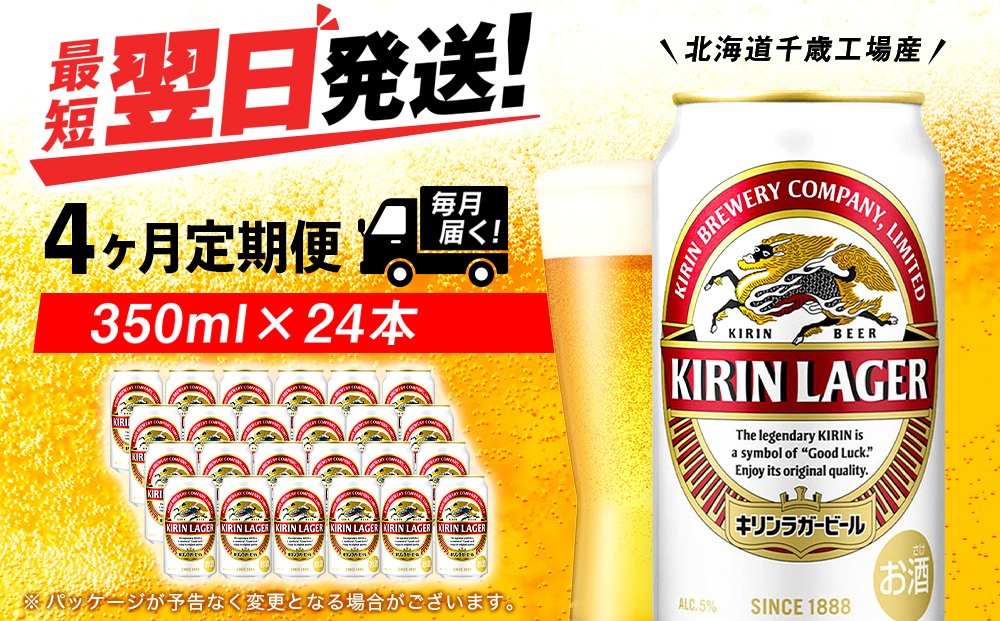 【定期便4ヶ月】キリンラガービール 350ml(24本)<北海道千歳工場産>
