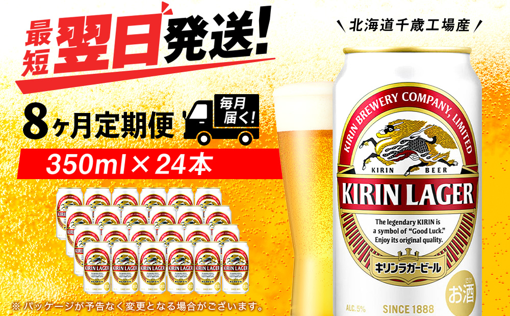 【定期便8ヶ月】キリンラガービール 350ml(24本)<北海道千歳工場産>
