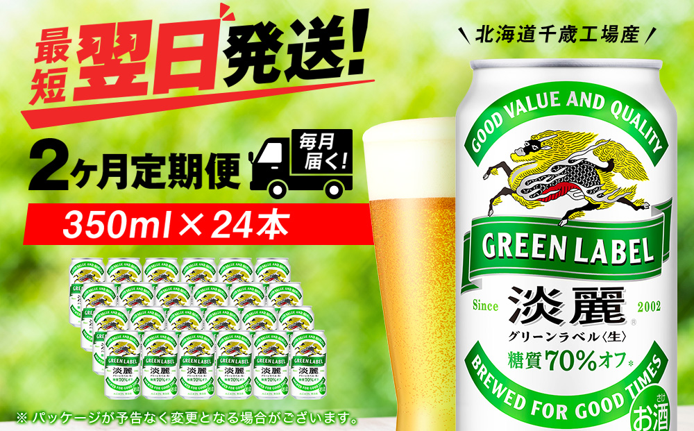 【定期便2ヶ月】キリン淡麗 グリーンラベル 350ml(24本)<北海道千歳工場産>