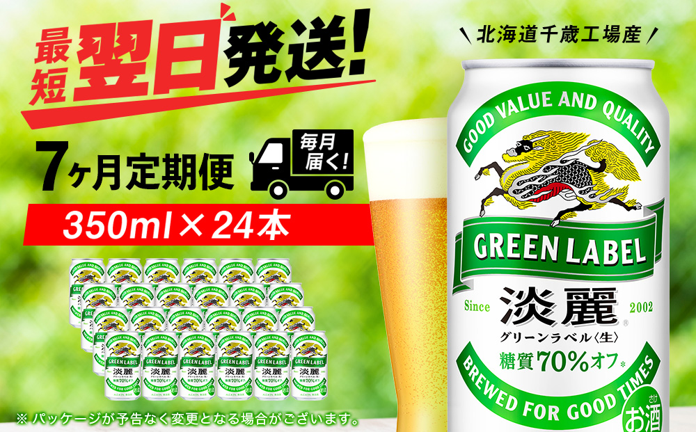 【定期便7ヶ月】キリン淡麗 グリーンラベル 350ml(24本)<北海道千歳工場産>