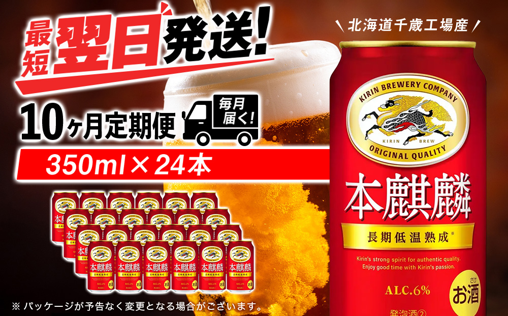 【定期便10ヶ月】キリン本麒麟 350ml(24本)<北海道千歳工場産>