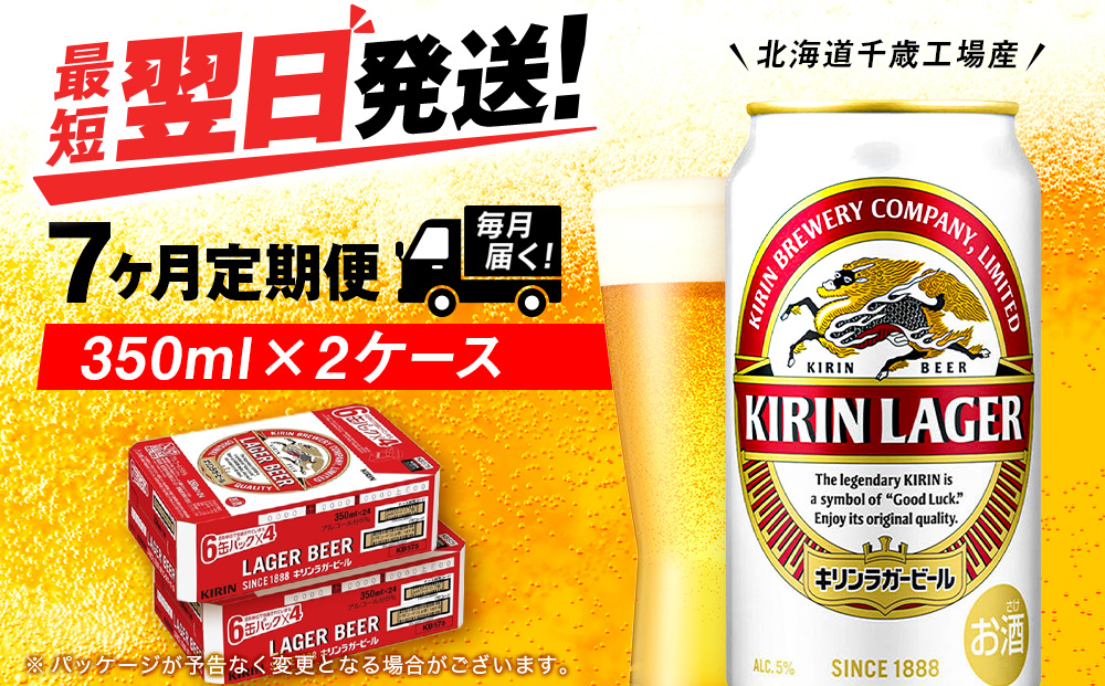 【定期便7ヶ月】キリンラガービール 350ml 2ケース(48本)<北海道千歳工場産>
