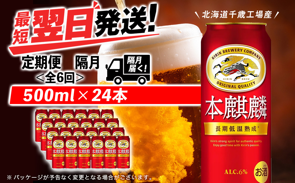 【定期便6回・隔月】キリン本麒麟 500ml(24本)<北海道千歳工場産>