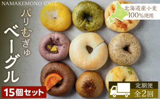 《定期便》~北海道産小麦100%使用~ パリむぎゅベーグル 15個セット<全2回>