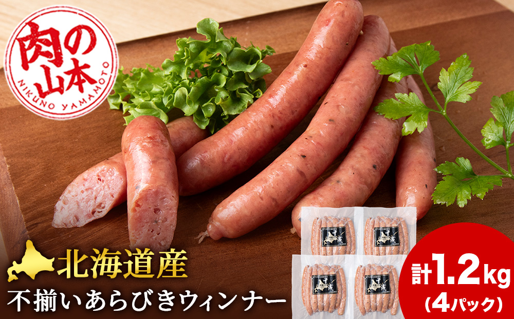 北海道産 不揃いあらびきウィンナー 300g 4パック ≪肉の山本≫