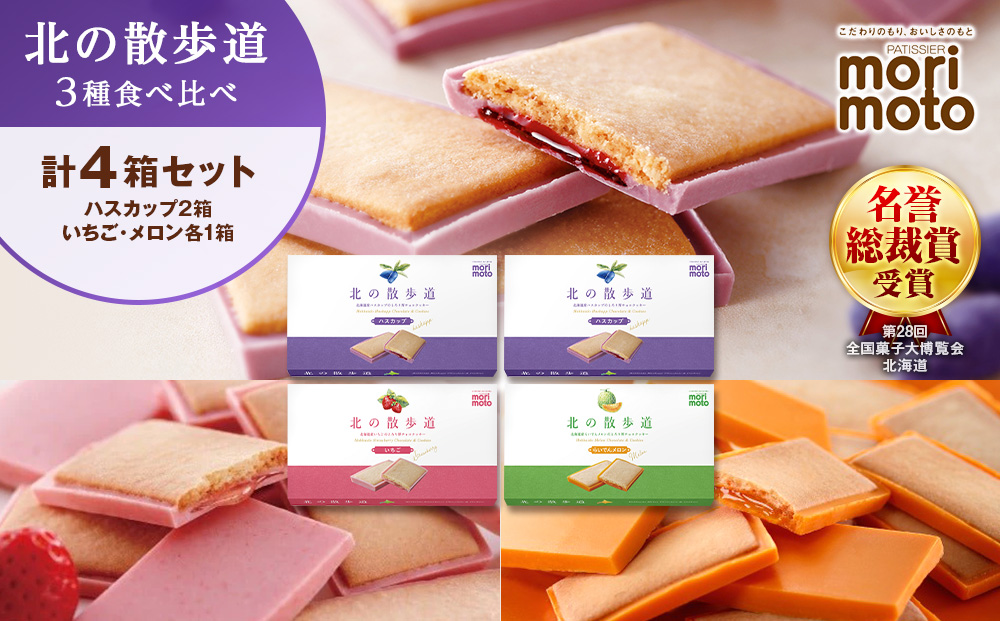 北の散歩道3種食べ比べ(ハスカップ×2箱、いちご×1箱、メロン×1箱)